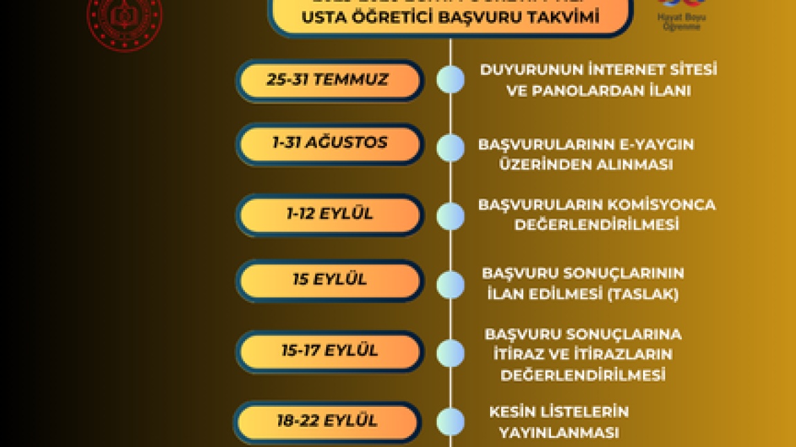 2025-2026 yılında duyurudaki takvime göre usta öğretici başvurusu alınacaktır.